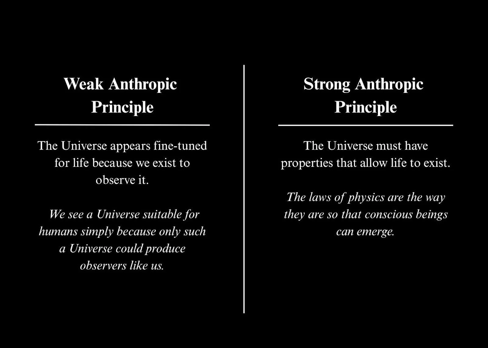 The remarkable precision of these forces and conditions is central to the anthropic principle, which observes that the Universe appears finely tuned to allow for the existence of life and observers like us. The weak anthropic principle suggests that the Universe must be compatible with our existence simply because we are here to observe it, without implying any special purpose or design. The strong anthropic principle proposes that the Universe’s properties are in some sense necessary to produce life and observers, hinting at a deeper inevitability or reason behind its life-permitting structure. This observed fine-tuning of our Universe gives rise to the questions which extend beyond physics—the question of cosmic indifference becomes more complex when the nature of these conditions almost feels inherently purposeful.